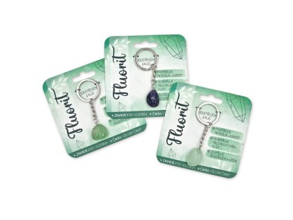 Klíčenka s fluoritem je symbolem klidu a soustředění. Chrání před negativními vlivy a zlepšuje mentální jasnost.