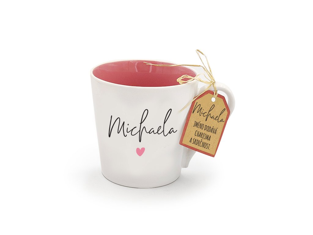 Kvalitní keramický hrnek se jménem zdobí kartička s informacemi o jeho majitelce - její povaze a vlastnostech. Ke každému hrníčku je možno pořídit i lžičku, která je s ním dokonale sladěna a tvoří tak krásný dárkový set. Uvidíte, že z něj MICHAELA bude mít radost.