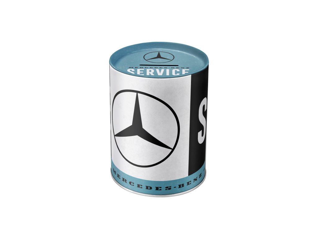 Tato plechová pokladnička "Mercedes-Benz Service" je skvělým dárkem pro všechny, kteří mají rádi vtipné retro dekorace. Je vyrobena z kvalitního plechu a je možno ji umístit na stůl či na poličku.