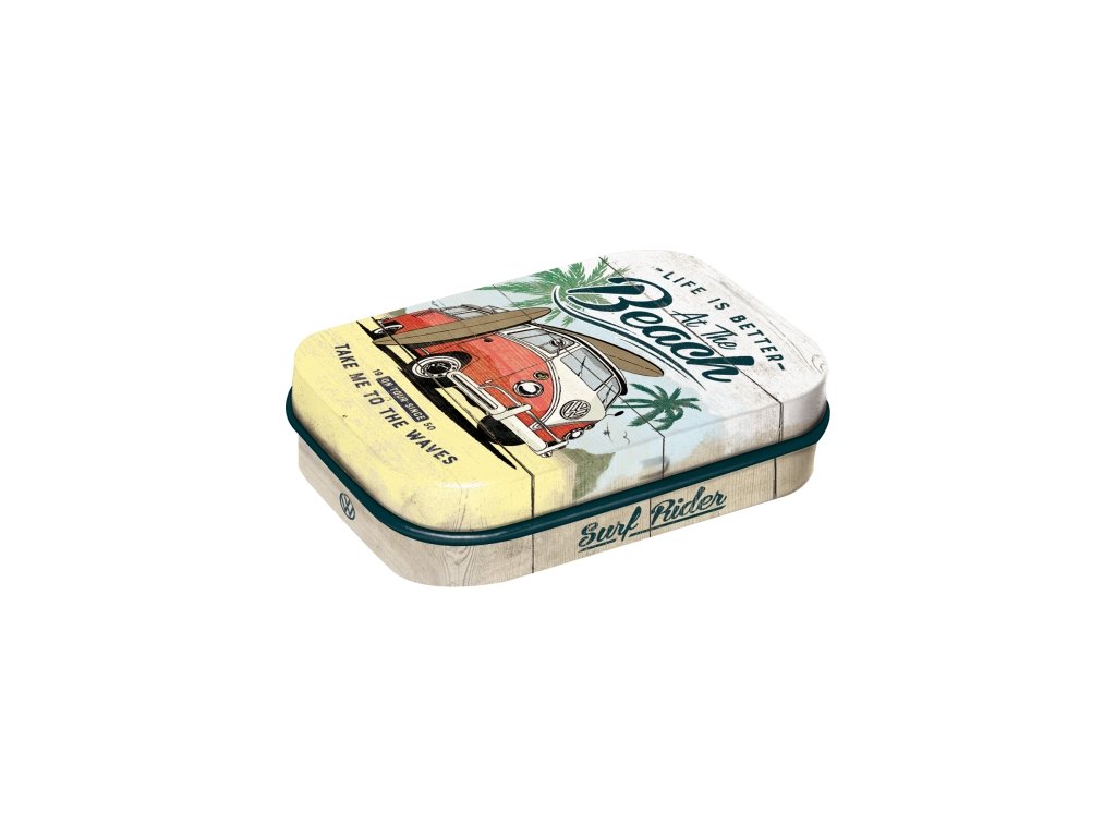 Oživte si vzpomínky na staré dobré časy s našimi mentolkami "Beach" v unikátní plechové krabičce s embosovaným designem inspirovaným světem automobilů. Příjemná mentolová chuť a stylový vzhled, to jsou naše mentolky.