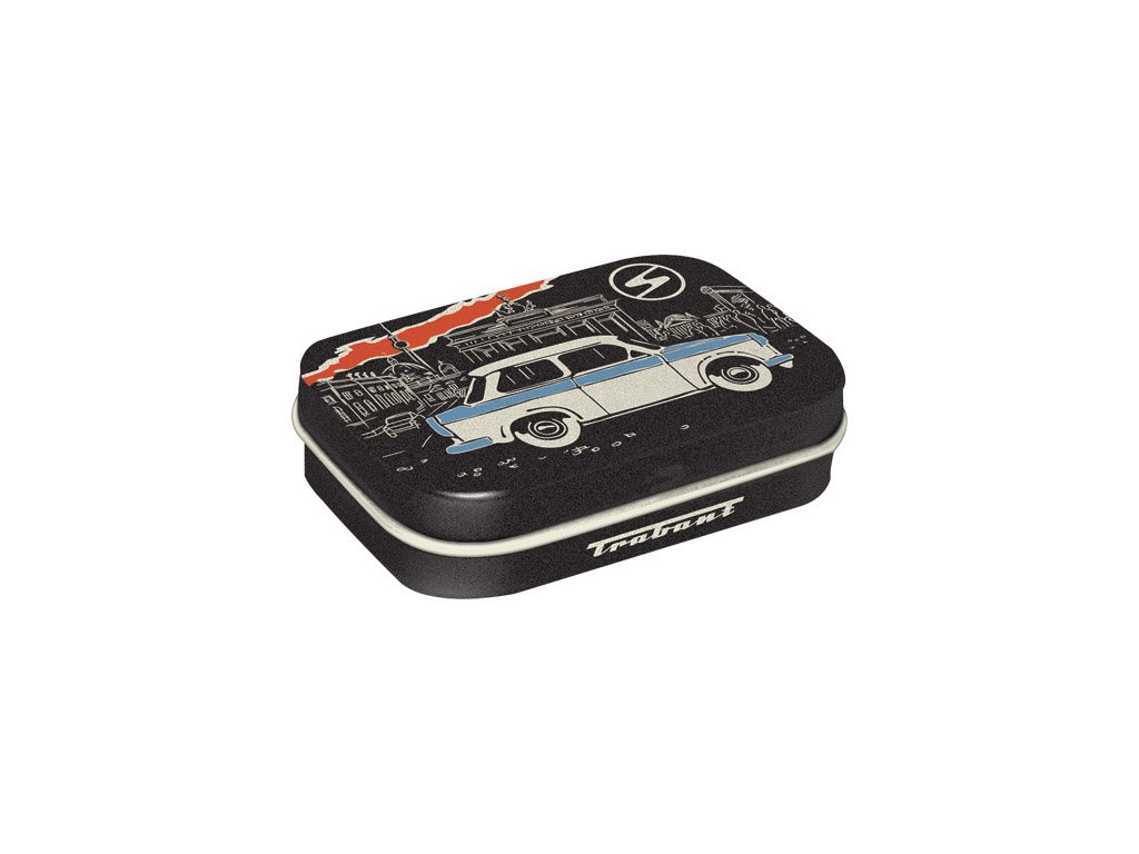 Oživte si vzpomínky na staré dobré časy s našimi mentolkami "Trabant - Berlin Black" v unikátní plechové krabičce s embosovaným designem inspirovaným světem automobilů. Příjemná mentolová chuť a stylový vzhled, to jsou naše mentolky.