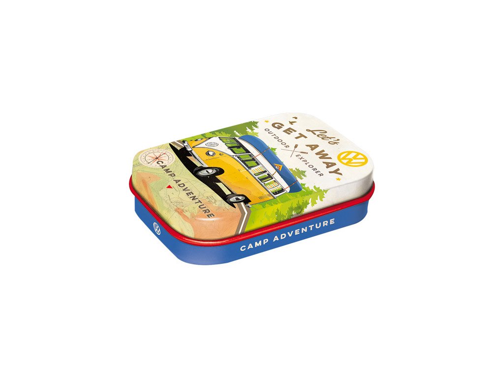 Oživte si vzpomínky na staré dobré časy s našimi mentolkami "VW Bulli - Let's Get Away" v unikátní plechové krabičce s embosovaným designem inspirovaným světem automobilů. Příjemná mentolová chuť a stylový vzhled, to jsou naše mentolky.