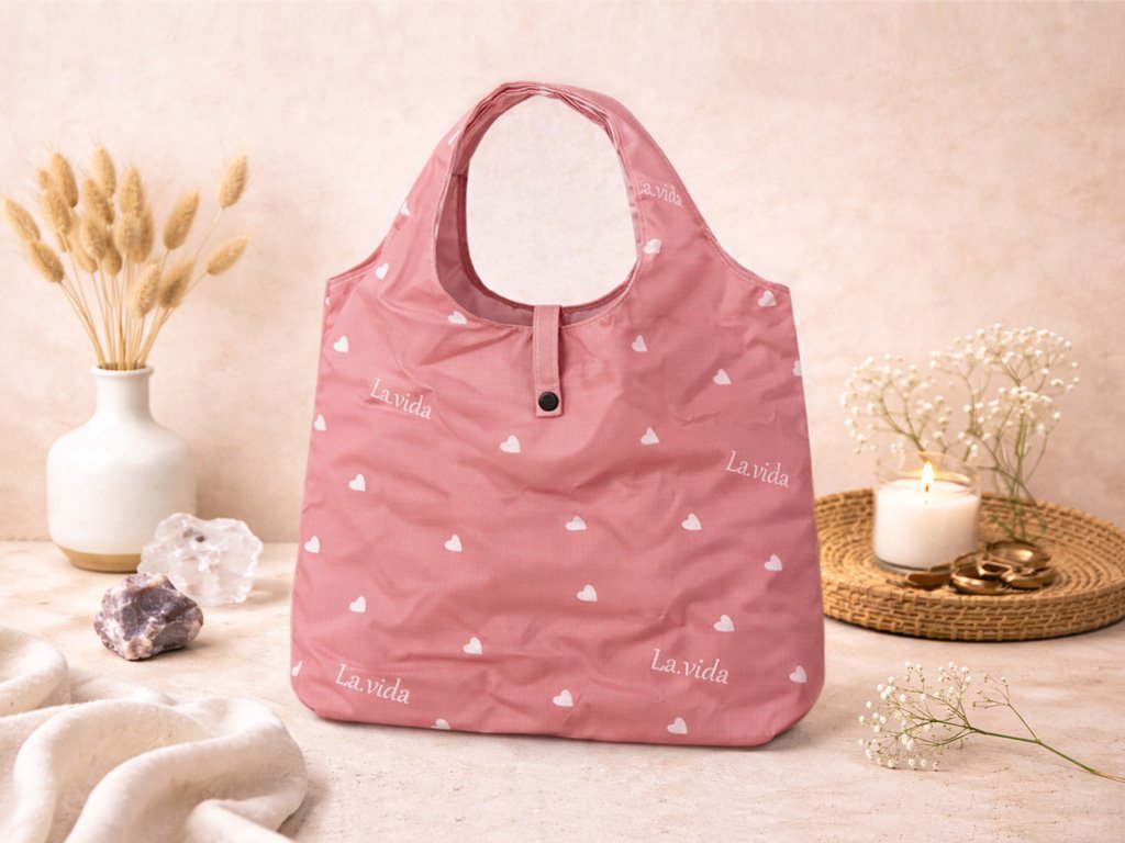 Skládací textilní nákupní taška Srdíčka – ekologická a odolná