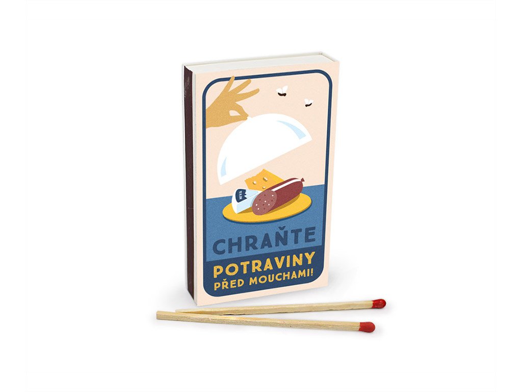 Zažehněte plamínek nevšedního humoru a s úsměvem na tváři zavzpomínejte na dobu nedávno minulou plnou mávátek, průvodů, různých omezení a nesmyslných hesel. Darujte naše originální retro zápalky s vtipným textem „Chraňte potraviny před mouchami!“.