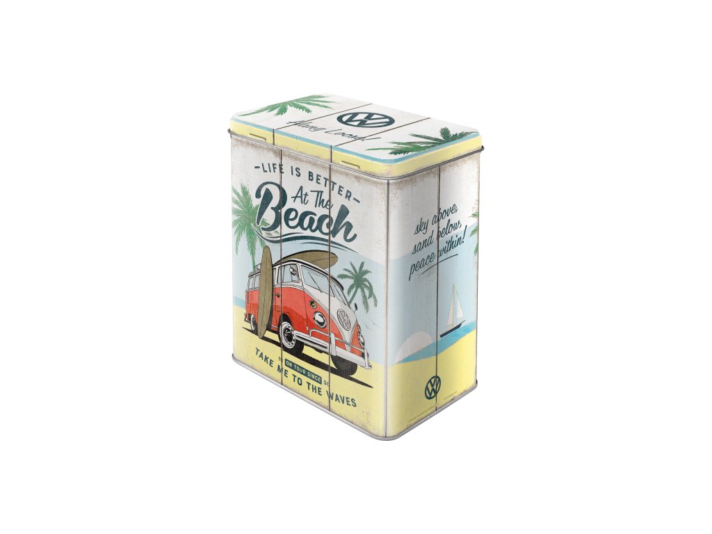 Tato plechová dóza "VW Bulli - Beach" je skvělým dárkem pro všechny, kteří mají rádi vtipné retro dekorace. Je vyrobena z kvalitního plechu.