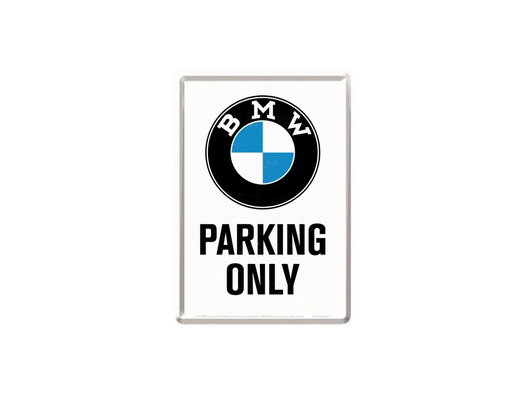 Tato plechová pohlednice "BMW Parking Only" je skvělým dárkem pro všechny, kteří mají rádi vtipné retro dekorace. Je vyrobena z kvalitního plechu a je možno ji umístit na dveře, stěnu nebo na poličku.