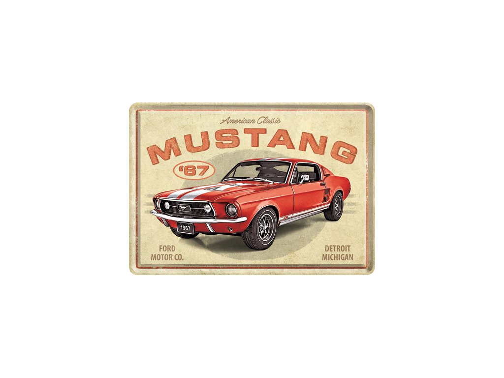Tato plechová pohlednice "Ford Mustang GT 1967" je skvělým dárkem pro všechny, kteří mají rádi vtipné retro dekorace. Je vyrobena z kvalitního plechu a je možno ji umístit na dveře, stěnu nebo na poličku.