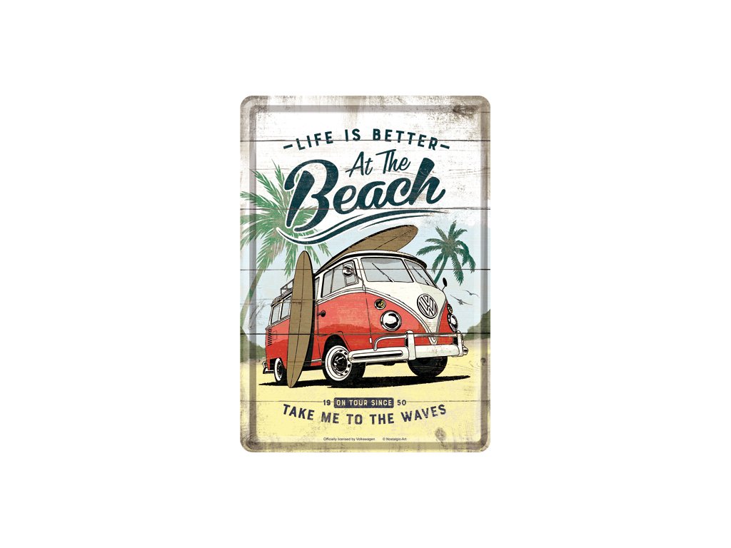 Plechová pohlednice VW Bulli Life is Better at the Beach NA10328