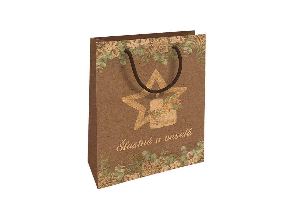 Vánoční dárková taška střední kraft Hvězda šťastné a veselé