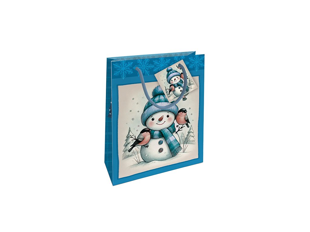 Vánoční dárková taška střední Sněhulák a ptáčci