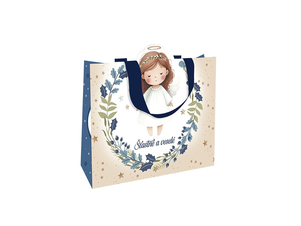 Vánoční dárková taška velká s výsekem Andílek šťastné a veselé