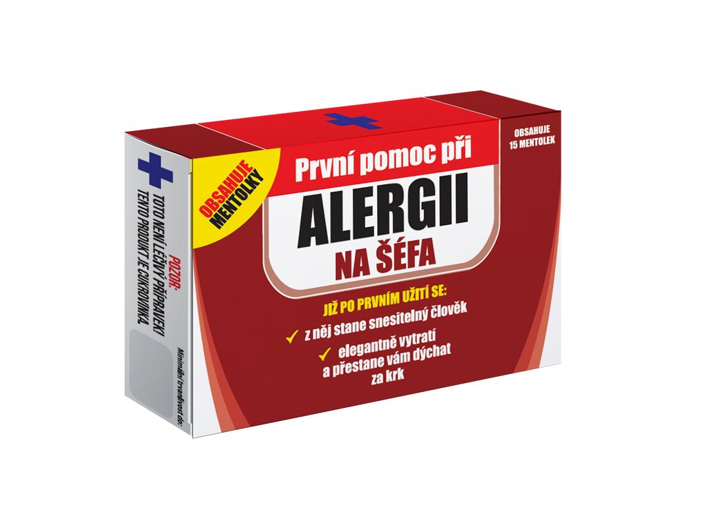 Trpíte nevolností při pomyšlení na pondělí? Máte záchvaty svědění, když šéf stojí za vašimi zády? Je čas na První pomoc při alergii na šéfa! Nejedná se o lék, ale o krabičku plnou nadhledu, která je ideálním dárkem pro každého zaměstnance, jenž si chce zachovat zdravý rozum.